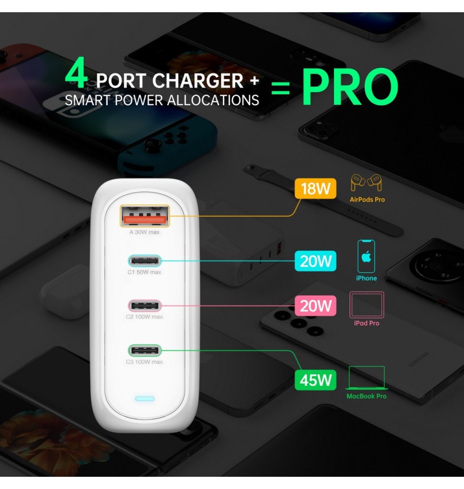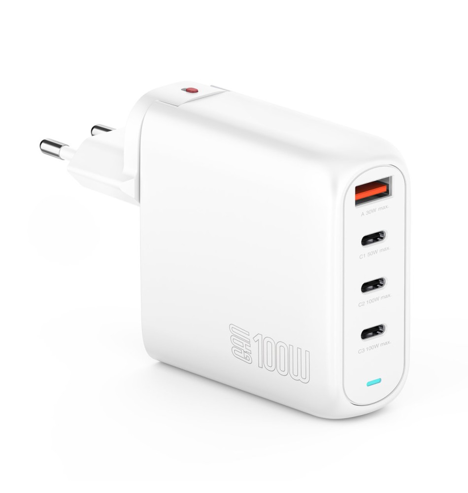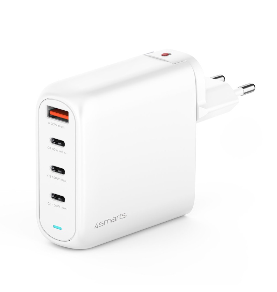 Omschrijving 4smarts – GaN Flex Pro 100W – 3x USB-C 1x USB-A – Wit