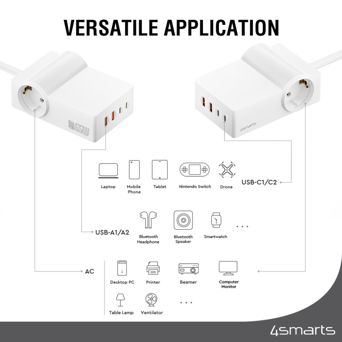4smarts - USB-C/A Stekkerdoos GaN 65W - Wit