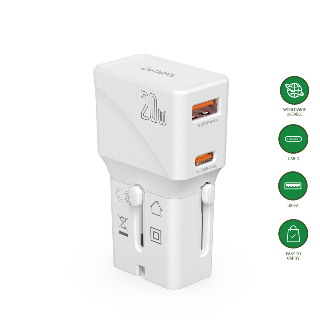 Omschrijving 4smarts - Wereldwijde reisadapter - Nomad Pocket 20W - Wit