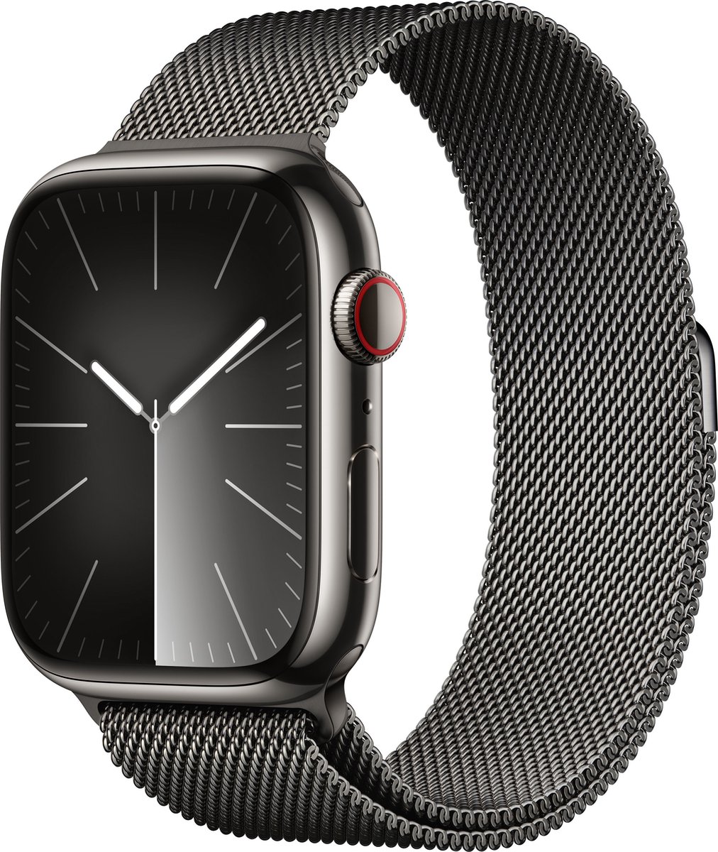 Omschrijving Apple Watch Series 9 - GPS + Cellular - 45mm - Graphite Stainless Steel Case with Graphite Milanese Loop