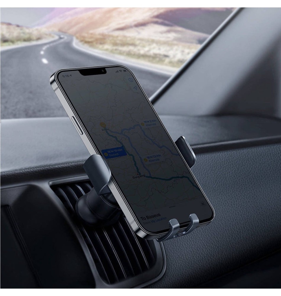 De Baseus Metal Age II Gravity Ventilatierooster Telefoonhouder biedt een eenvoudige en veilige manier om je smartphone te gebruiken in de auto, bijvoorbeeld voor navigatie- en/of media-apps. Je compatibele smartphone blijft stevig in de houder zitten, die bevestigd is aan het ventilatierooster op het dashboard van je auto. Hierdoor staat het scherm handig op ooghoogte, zonder dat je zuignappen of andere plakmiddelen nodig hebt.