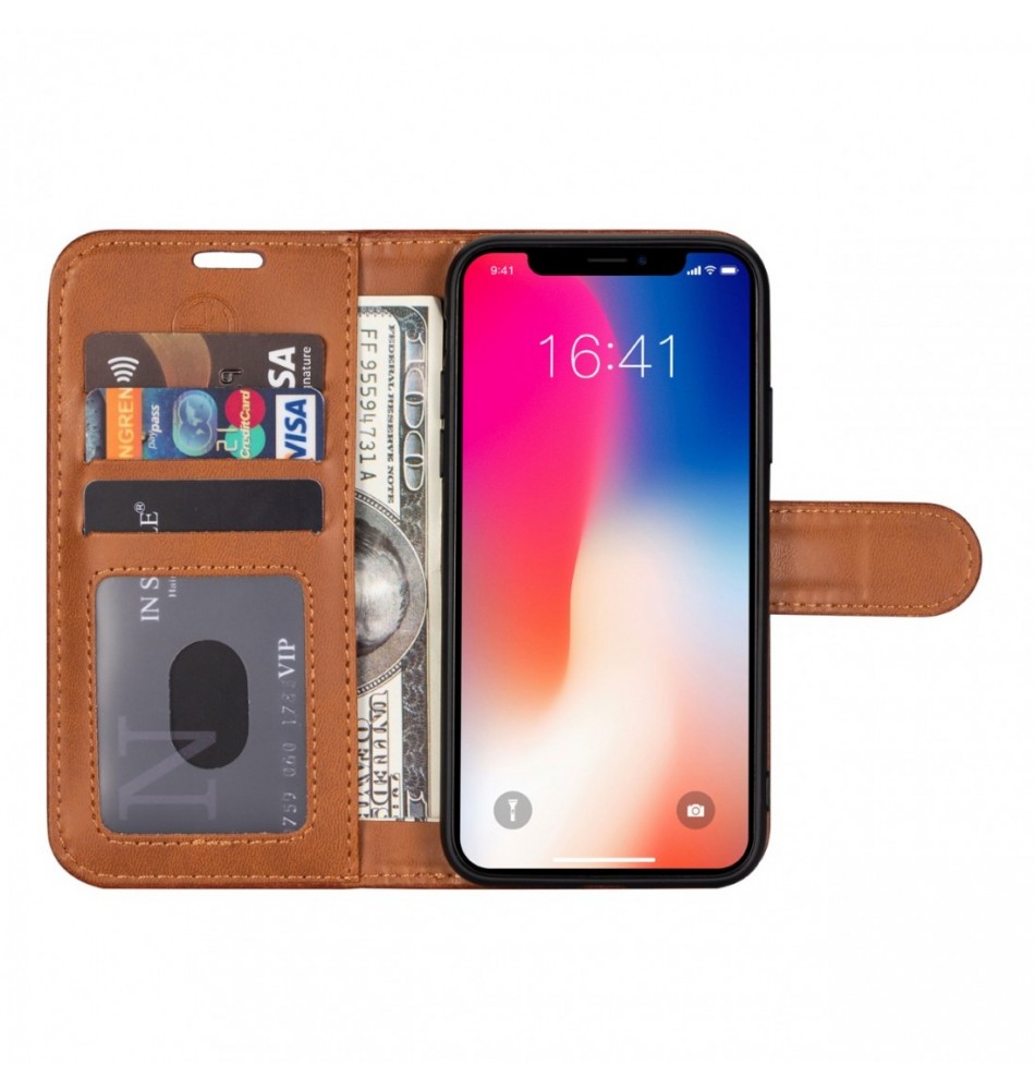 Omschrijving Echt Lederen Bookcase - iPhone 12 Pro Max - Bruin