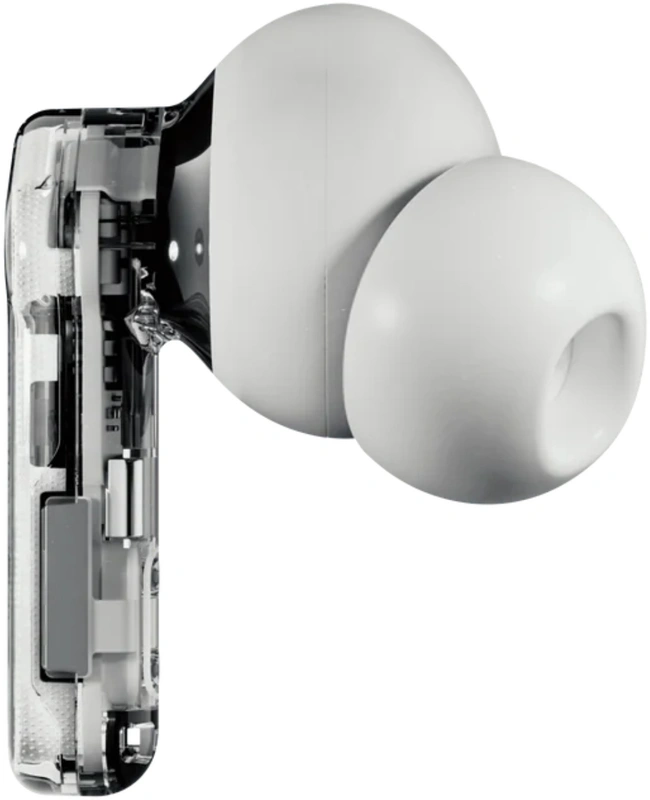 De Nothing Ear (a) onderscheidt zich door zijn unieke, transparante behuizing. Deze laat de technische precisie van elk component zien, van de drivers tot de microfoons. Het strakke, futuristische ontwerp is een verfrissende verandering in een wereld vol alledaagse oordopjes.