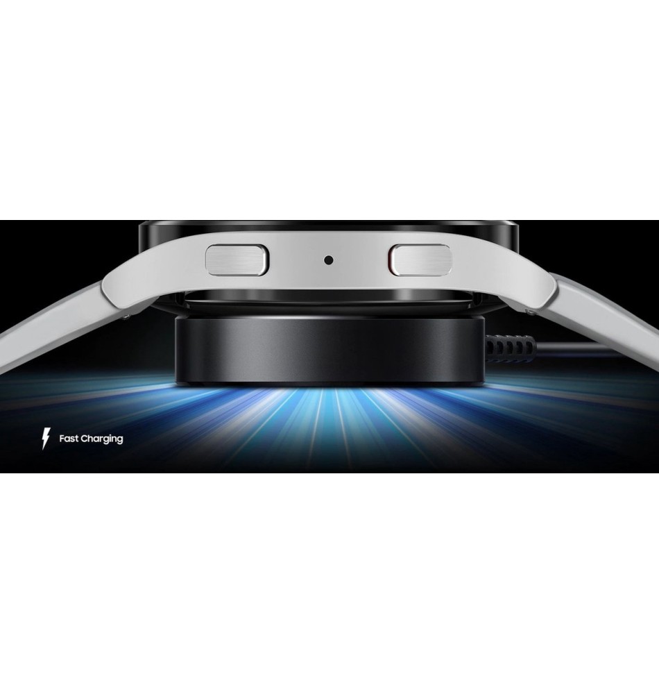 De geheel nieuwe draadloze horlogeoplader is vernieuwd om u snel van stroom te voorzien met snel opladen via USB-C. Leg je Galaxy Watch5 plat neer, de oplader klikt hem magnetisch op zijn plaats en doet de rest.
