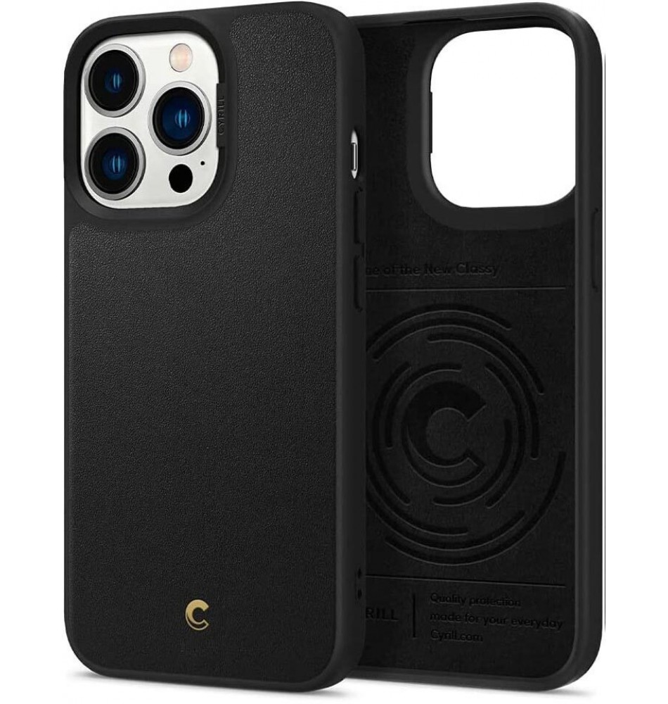 Omschrijving Spigen - Cyrill Leather Brick - iPhone 13 Pro - ACS03581 - Zwart