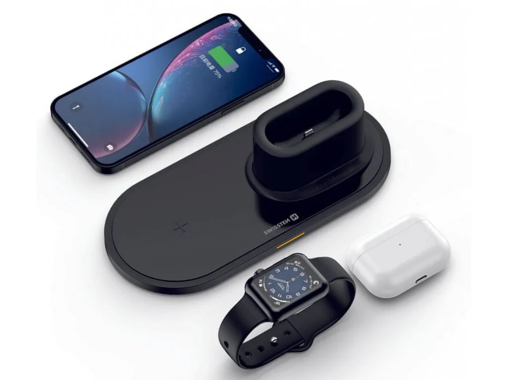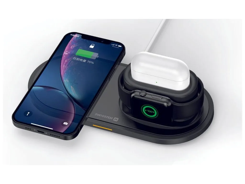 Omschrijving Swissten Draadloze Oplader 15W 3-in-1 Zwart