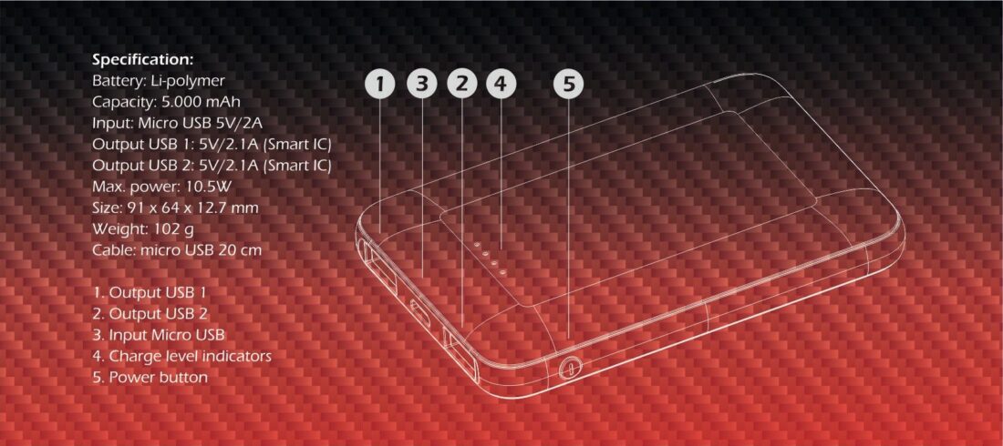 Specificaties Swissten Worx Powerbank 5000 mAh Zwart